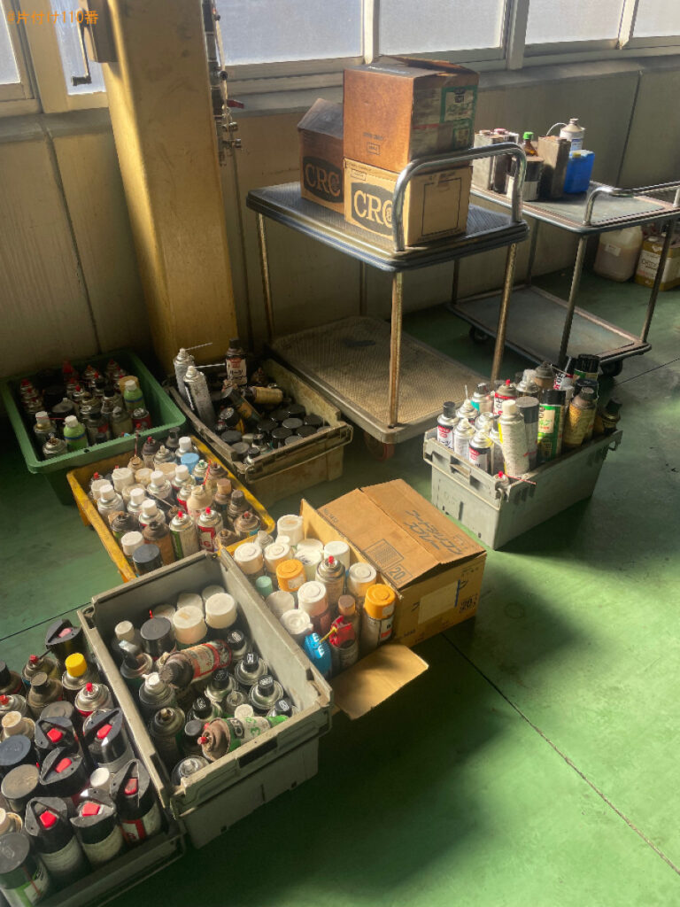 担当のコメント 中身の残ったスプレー缶の処理にお困りのお客様からご相談いただきました。中身が入った状態でも回収可能なことがご依頼の決め手になったようです。片付け110番では、自治体で回収していないものも回収しております。不用品がございましたらまたいつでもご相談ください。